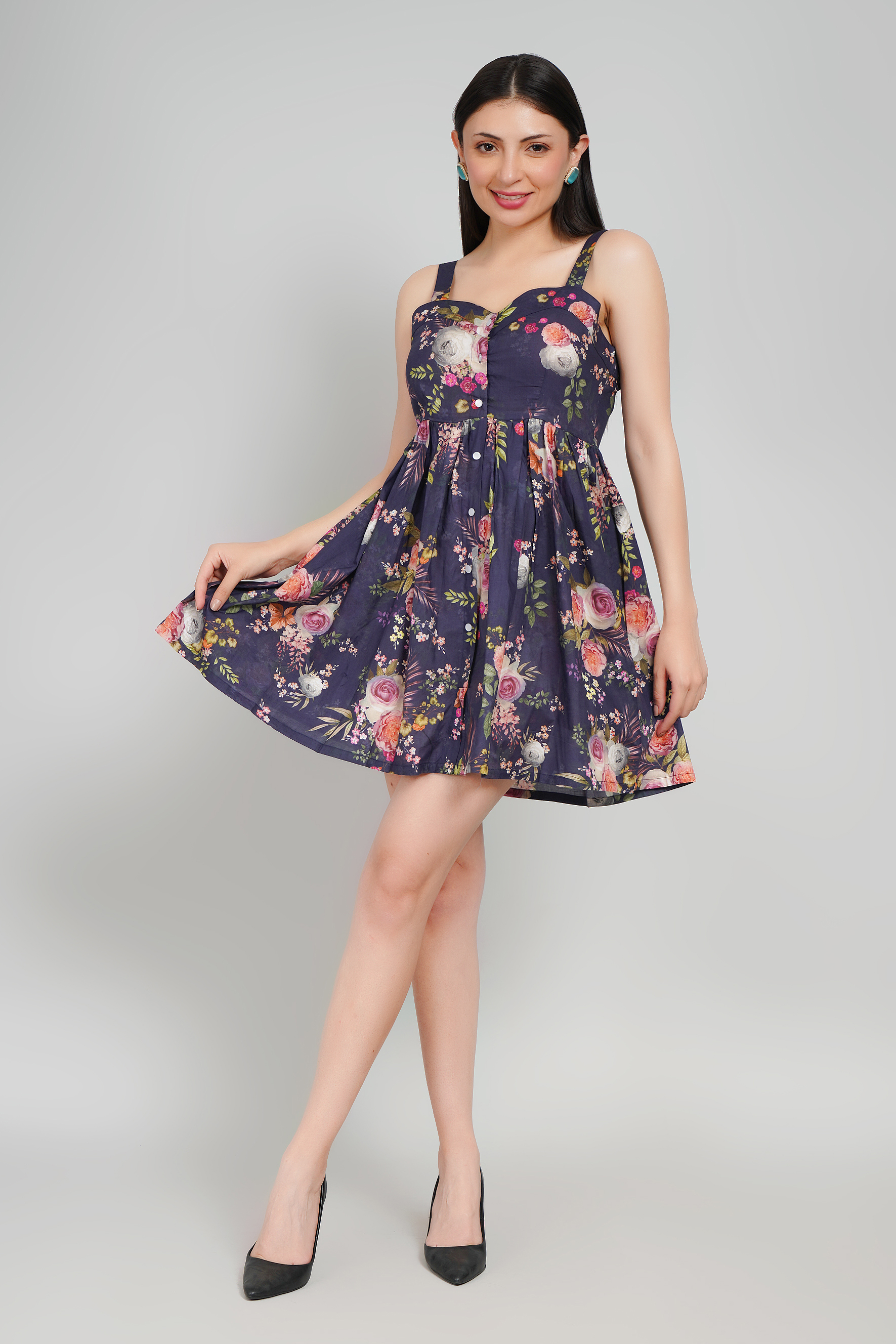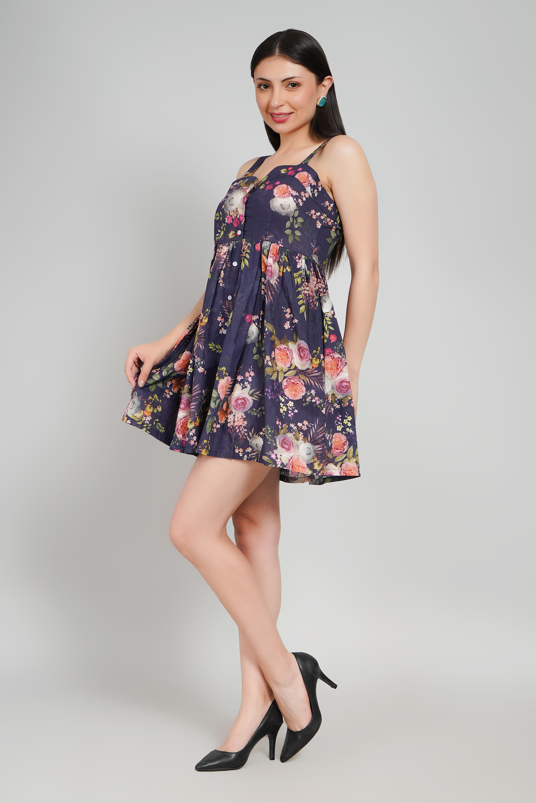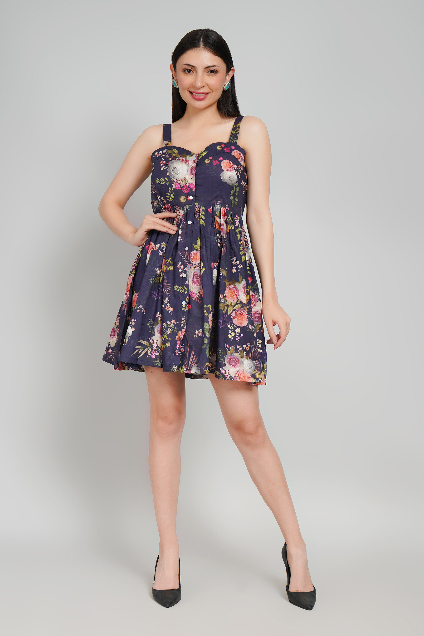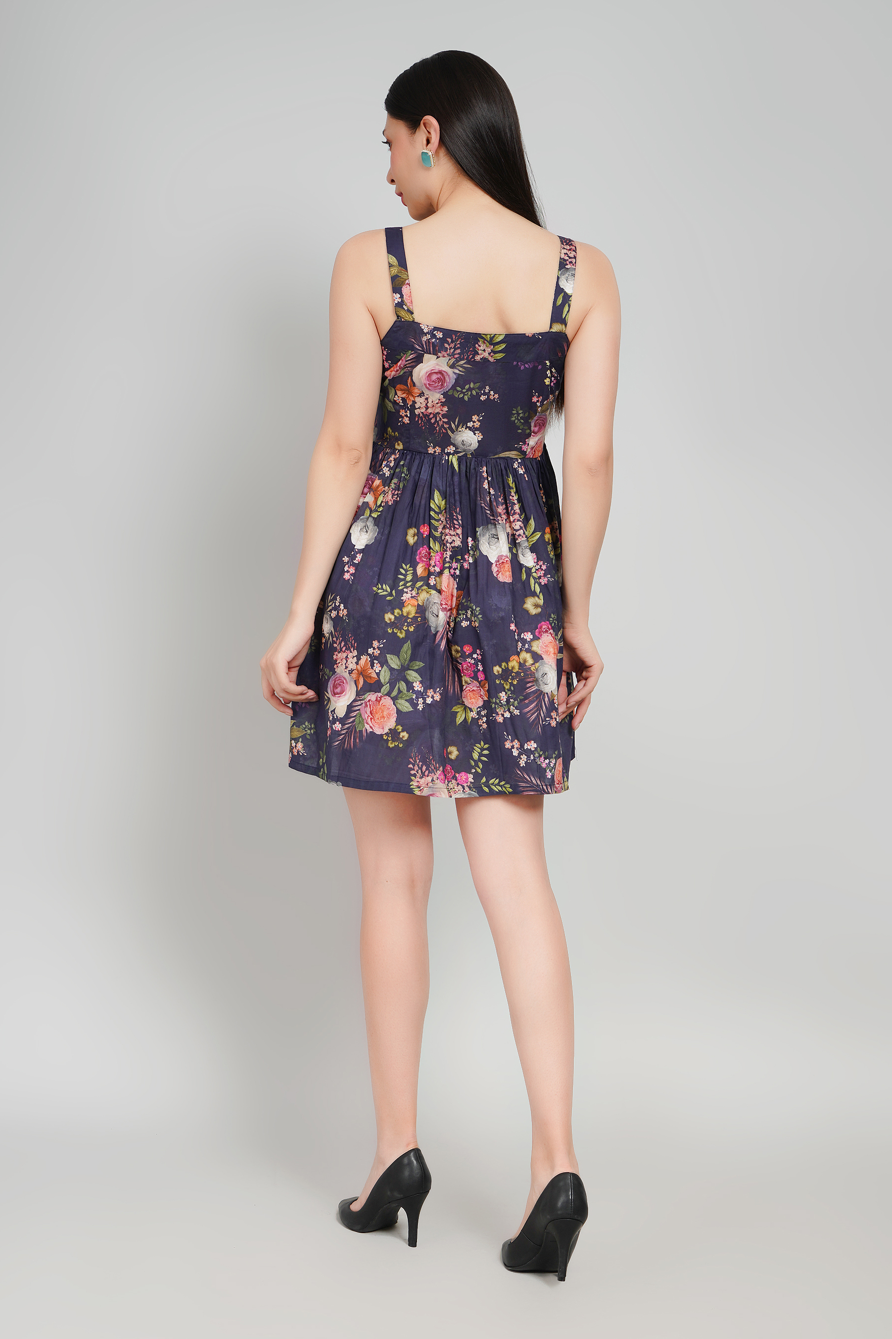 Mysterious yet striking, Aurora Noir embodies bold sophistication. Tailored in pure cotton, this fit-and-flare silhouette sculpts the body with ease while offering comfort. The square neckline highlights confident femininity, and the sleeveless cut adds a daring, modern edge. Its mini length makes it the perfect statement piece for evenings defined by allure and presence.